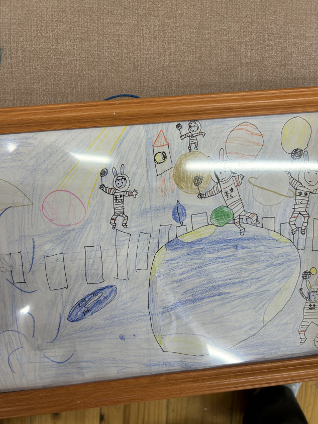 K君の絵は「宇宙」Aさんの絵は「夜のもり」です