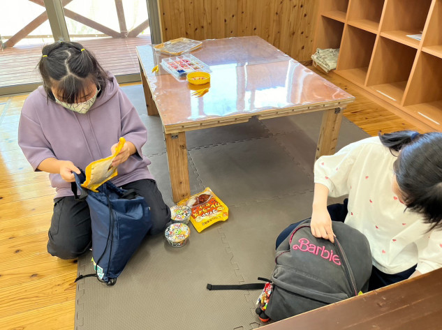 さんぽは、昨日の地震を教訓に、避難バッグの確認と地震時の避難の確認をしました。