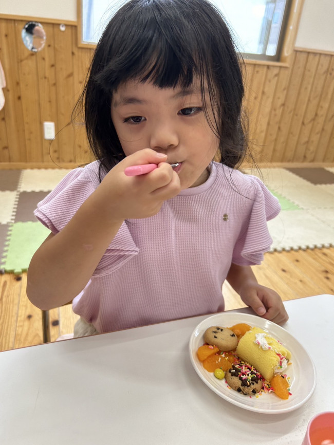未就学は誕生会でした。みんなでケーキ🍰を作りお祝いしました。誕生者のKさんは、ダンスが大好きで曲に合わせて踊ってます。出来ることが増え成長が楽しみです。