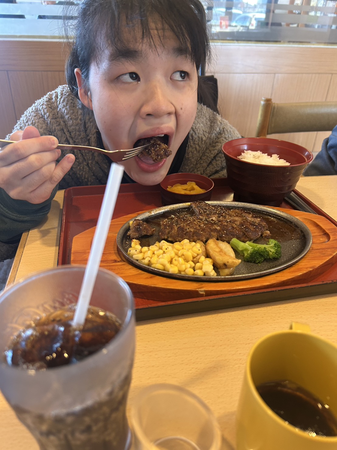 電車に乗って串間へ向かい外食支援を行いました。