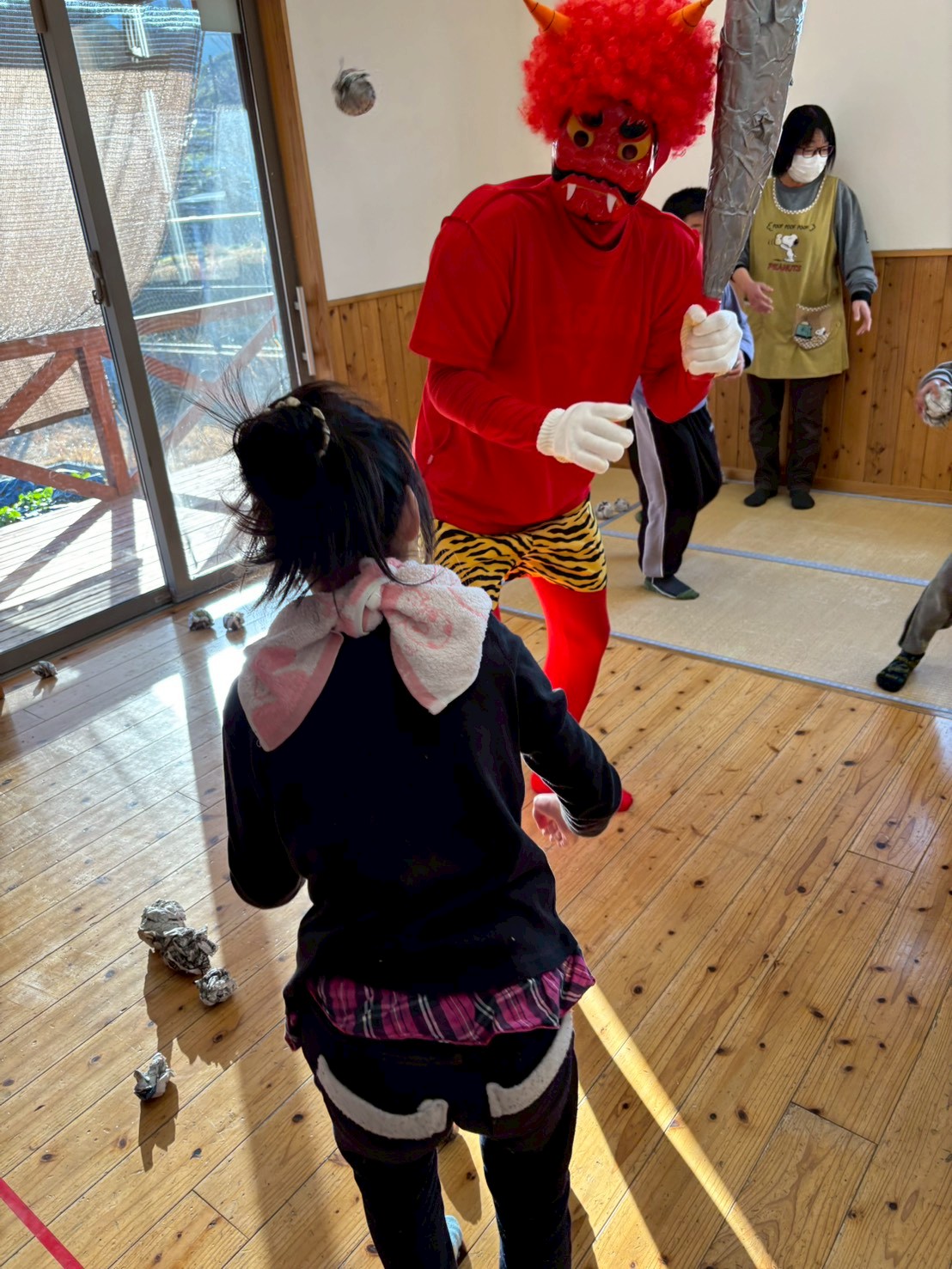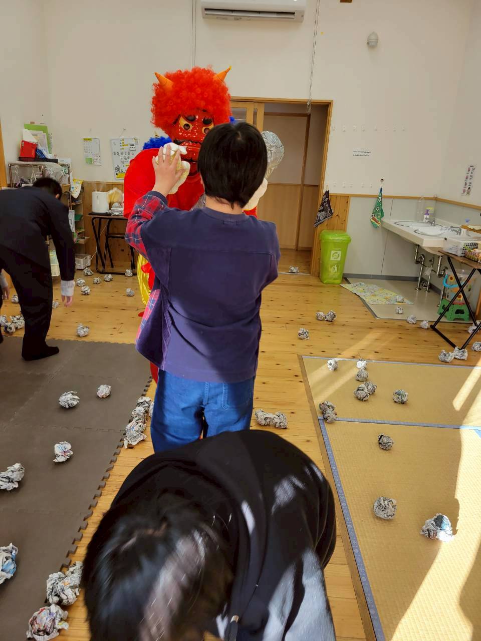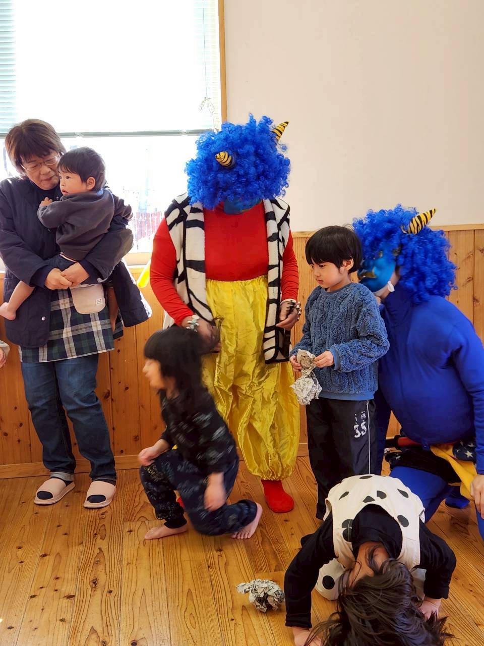 怖がる子や面白がる子、鬼に立ち向かう子など