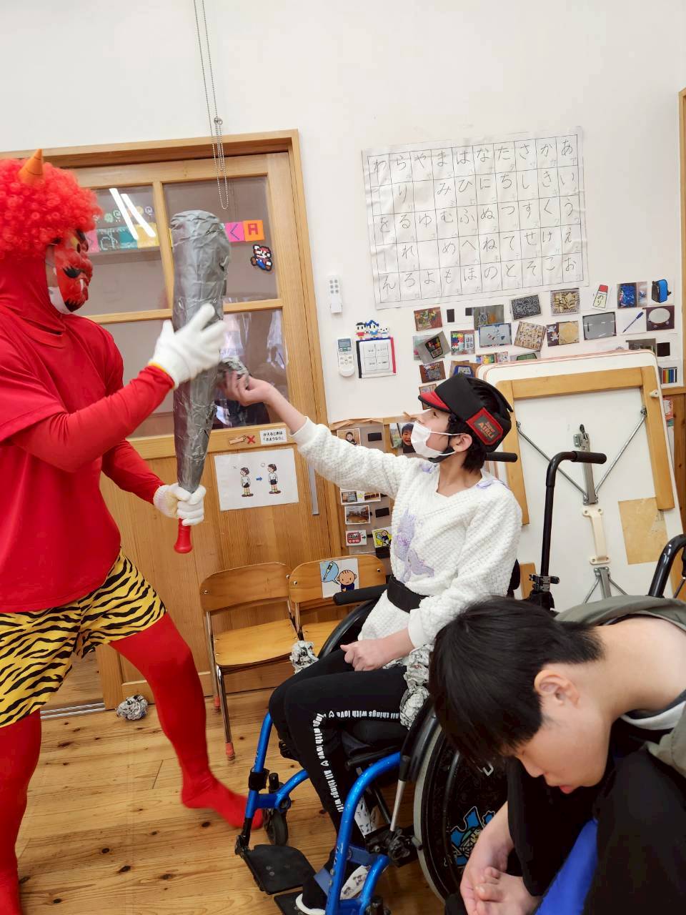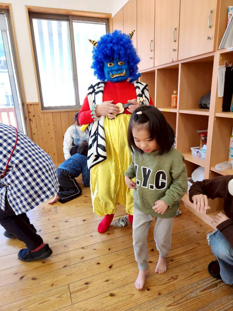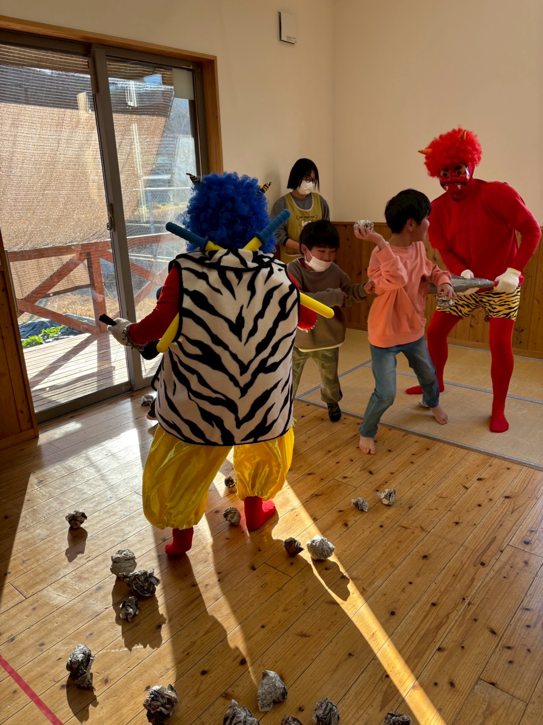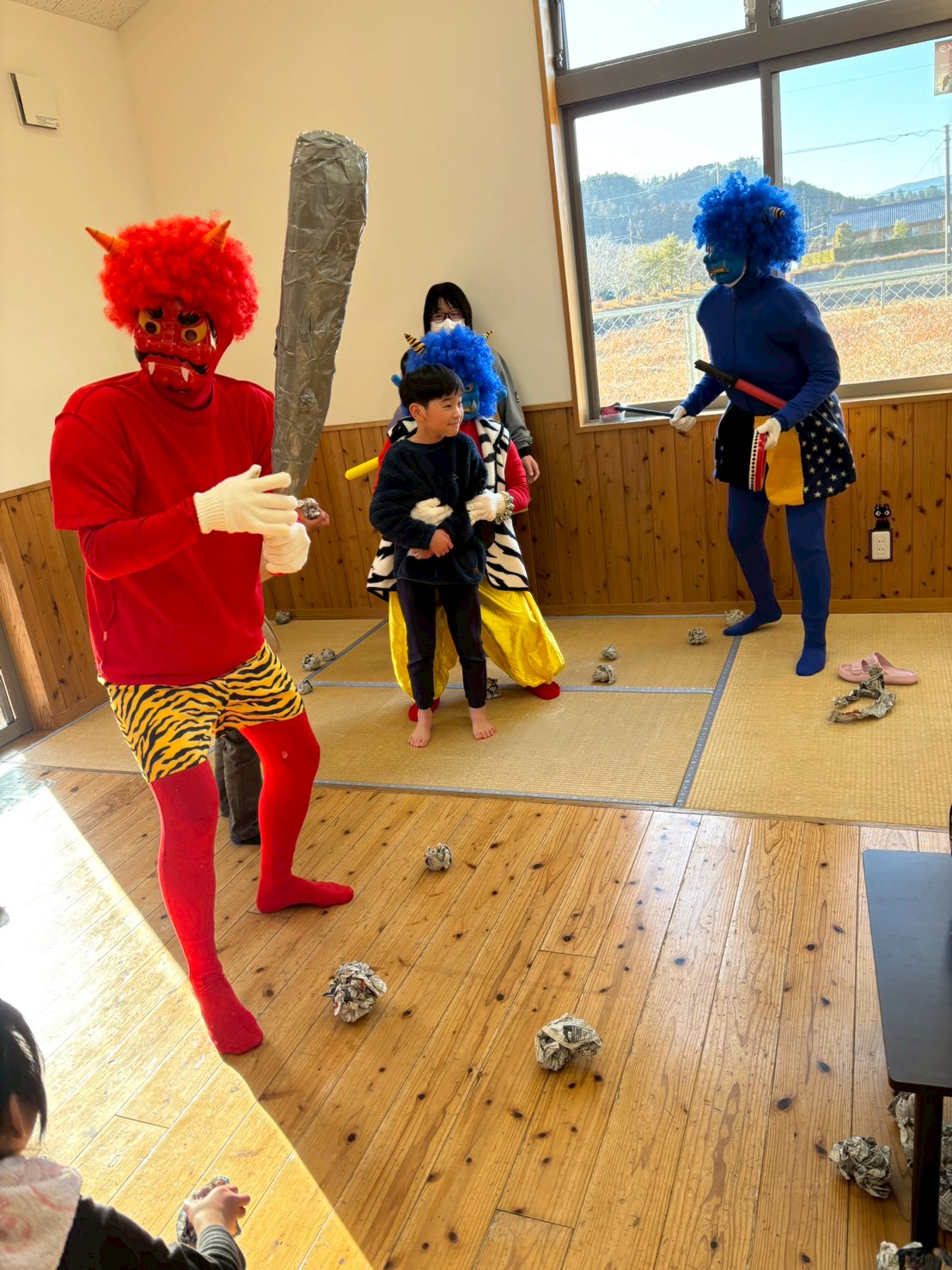 怖がる子や面白がる子、鬼に立ち向かう子など