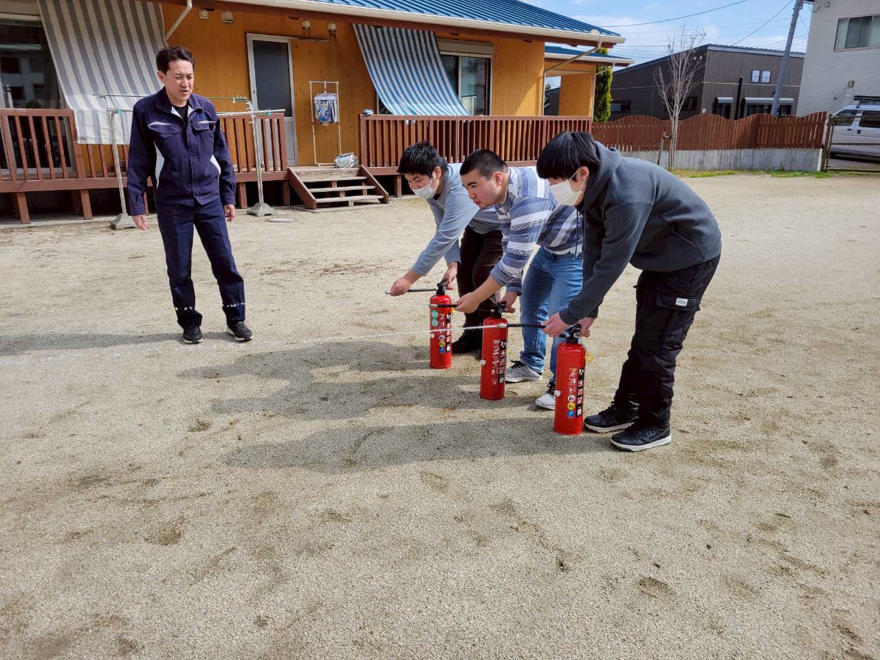 その後は、ヤマト防災さんの協力の元消火訓練も行いました